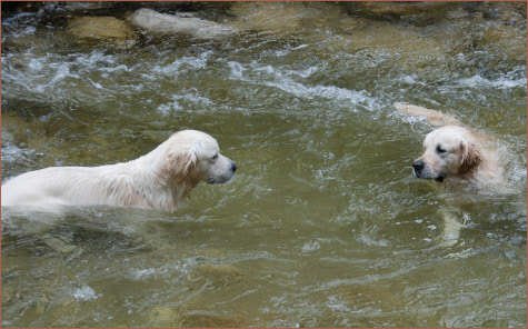 Wasser hat für unsere Hunde eine magische Anziehungskraft und so ist es nicht verwunderlich, dass sie auch auf dem Rückweg gerne jede Möglichkeit nutzen, um sich zu erfrischen.