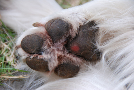 Am späten Nachmittag kam uns Polly humpelnd entgegen. Sie lief wie auf rohen Eiern. Oh je, sie hat sich die Pfoten wundgelaufen. Wie schmerzhaft das ist, kann sich wohl jeder vorstellen. Das tat uns sehr leid. Arme kleine Polly!