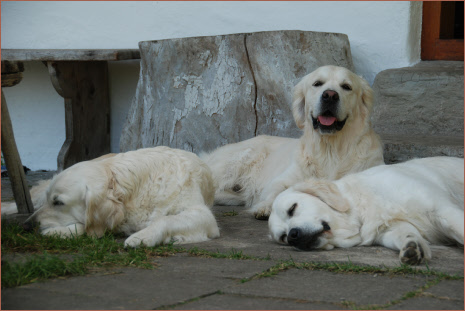Wieder auf der Stöffelalm, sucht sich jeder ein stilles Plätzchen zum ausruhen. Pssst, nicht stören! Schlafende Hunde weckt man nicht.
