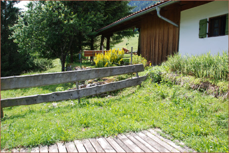 Das letzte Stück gehen wir auf ebenen Weg. Und dann auf einmal, ganz unverhofft, wird man mit dem wunderschönen Anblick der Hochalm belohnt. Einfach traumhaft, dieses Fleckchen Erde. Da geht einem das Herz auf.