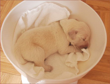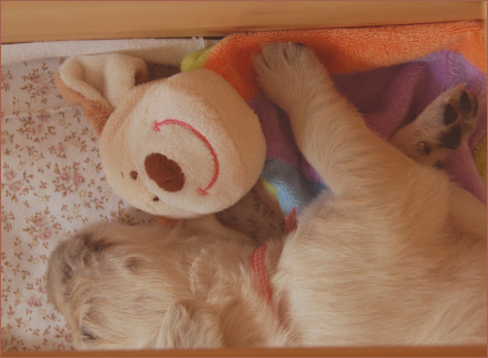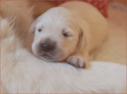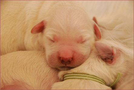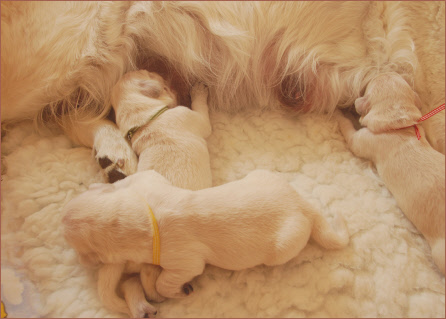 Mittlerweile hat sich bei den Welpen ein Schlaf - Säuge - Rhythmus eingestellt. Haben