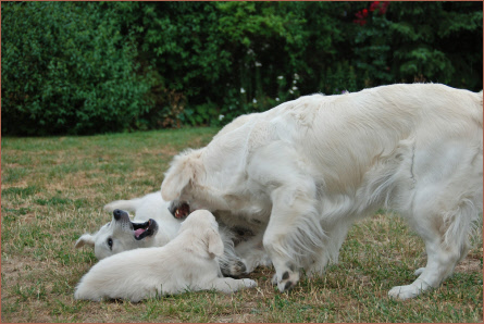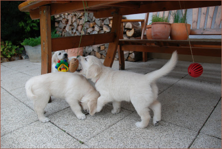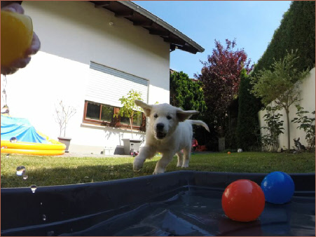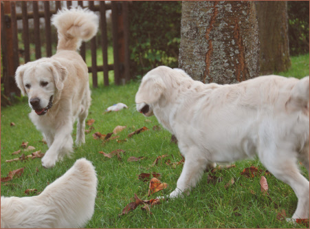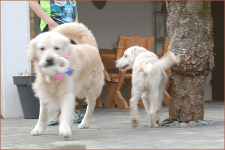 Junghund, der heute Nachmittag unheimlich viel Spaß hatte, mit seinen Eltern gemeinsam