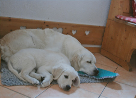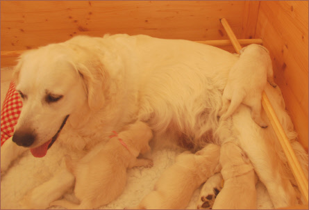 Bei ihren ersten beiden Würfen machte sie uns deutlich, dass Hunde wirklich etwas ganz Einzigartiges sind. Maya ist eine äußerst instinktsichere Hündin. Völlig selbständig meisterte sie jedesmal das ganze Geburtsgeschehen und war eine wunderbare Mutter. Wir konnten viel von ihr lernen. Ihre Welpen entwickelten sich zu fröhlichen und lieben Familienmitgliedern.