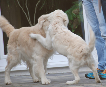 Kurz darauf meldete sich Nadine, dass Mira läufig sei. Sie ist übrigens die Erste von den Hündinnen. Meine Güte, so schnell werden sie groß. Naja, immerhin sind sie ja auch schon 7 Monate.