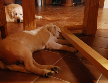 es ruhig. Chloe hat sich für ein Nickerchen unter dem Tisch zurückgezogen.
