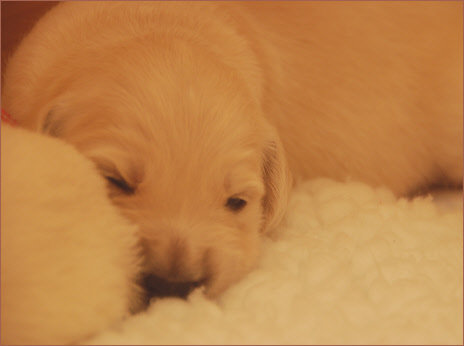 Auf uns Menschen machen die kleinen Moppelchen einen hilflosen Eindruck und wir meinen ständig helfen zu müssen. Aber das ist völlig falsch. Der Mensch sollte in diesem Lebensabschnitt nur bedingt eingreifen. Der Lernerfolg sieht nämlich so aus: wenn ein Welpe Hunger hat oder friert, muß er aktiv werden, um diese Mängel auszugleichen. Er muß sich anstrengen, um seine Bedürfnisse zu befriedigen. Am Ende steht dann der Erfolg (voller Magen, Wärme), und der Welpe hat eine Grundinformation über das Prinzip späterer psychischer und physischer Vorgänge und über das Lernen an sich erhalten. Für eine normale Entwicklung des Welpen ist es unabdingbar, daß er diese einzelnen Komponenten durchläuft.