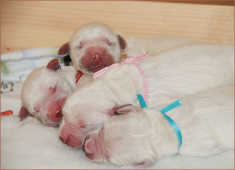 Die Welpen werden mit geschlossenen Augen und Gehörgängen geboren. Die Ohren sind