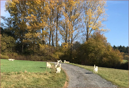 Ein Spaziergang im Feld bietet für Hunde viel Spannendes. Gemeinsam mit den Geschwistern schnüffeln, buddeln, im Schwung der Begeisterung zu rennen und zu toben, da lacht jedes Hundeherz.