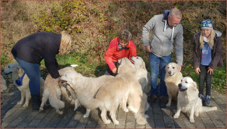 Die Stunden vergingen schnell... jede Familie hatte irgendetwas Schönes von ihrem Hund zu berichten und während wir uns unterhielten, schob ganz unbemerkt die eine oder andere Fellnase ihren Kopf unter unsere Hände. Streicheleinheiten, da waren wir uns auch alle einig, lieben unsere Golden Retriever über alles.