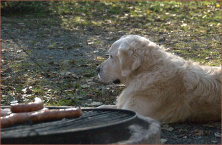 Frische Luft macht hungrig und was gibt es besseres, als den Tag mit gebrutzelten Würstchen abzurunden. Gleich nach dem Spaziergang machte Herrchen Feuer und es dauerte nicht lange, da stieg uns schon der Duft vom frischem Grillgut in die Nase.
