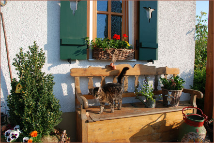 Im darauffolgenden Frühjahr, als die ersten Sonnenstrahlen sich bemerkbar machten, zog es Mücke wieder nach draussen und sie unternahm kleine Streifzüge durch unseren Garten. Das freute uns sehr. Sie ist wieder ganz die „Alte“.
